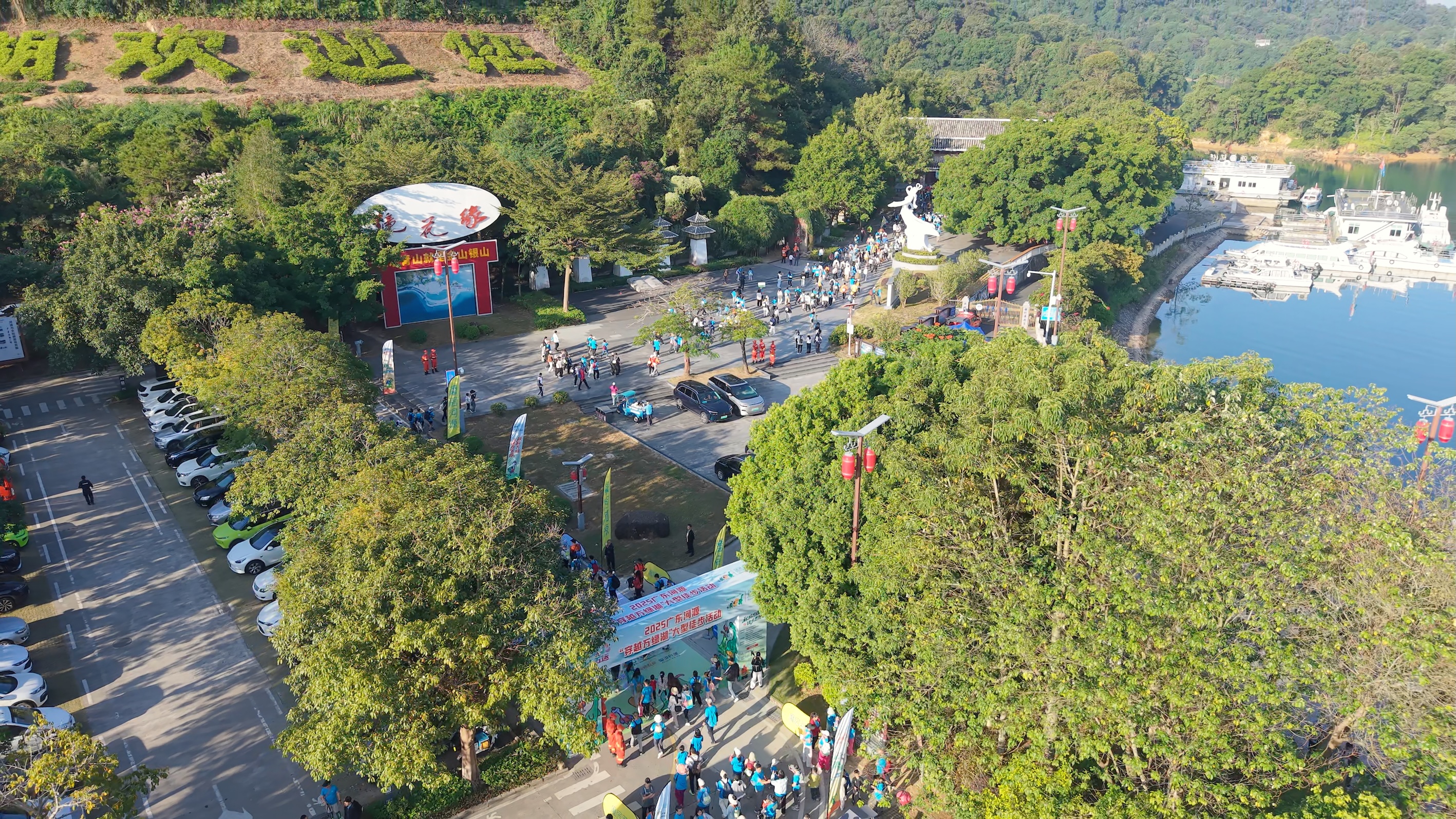 2025年11月16日,市民在广东河源“穿越万绿湖”大型徒步活动中。河源市委宣传部供图