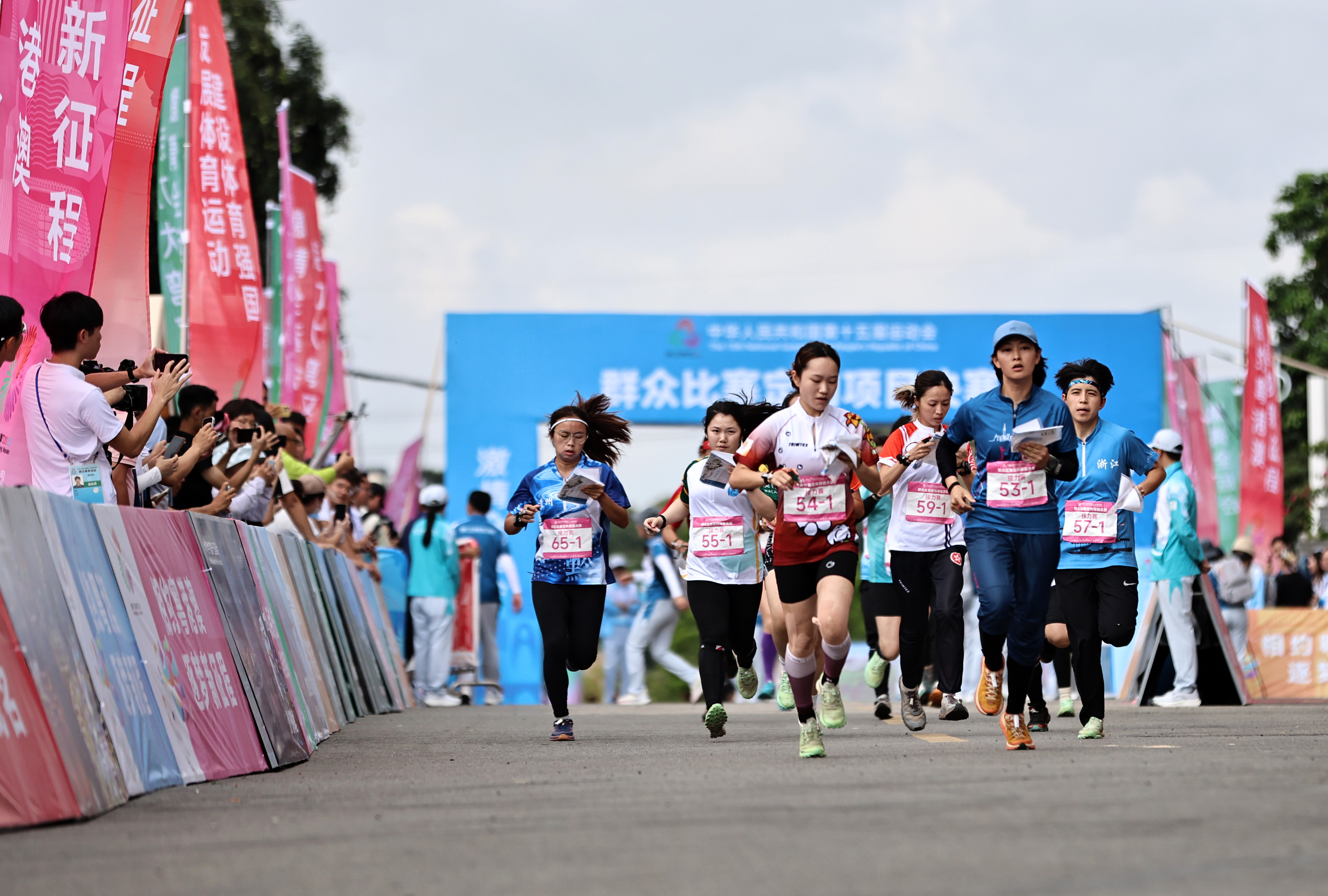 2025年5月8日,参赛选手在广东云浮举办的第十五届全国运动会群众赛事女子定向接力赛中出发。新华社记者 黄国保 摄