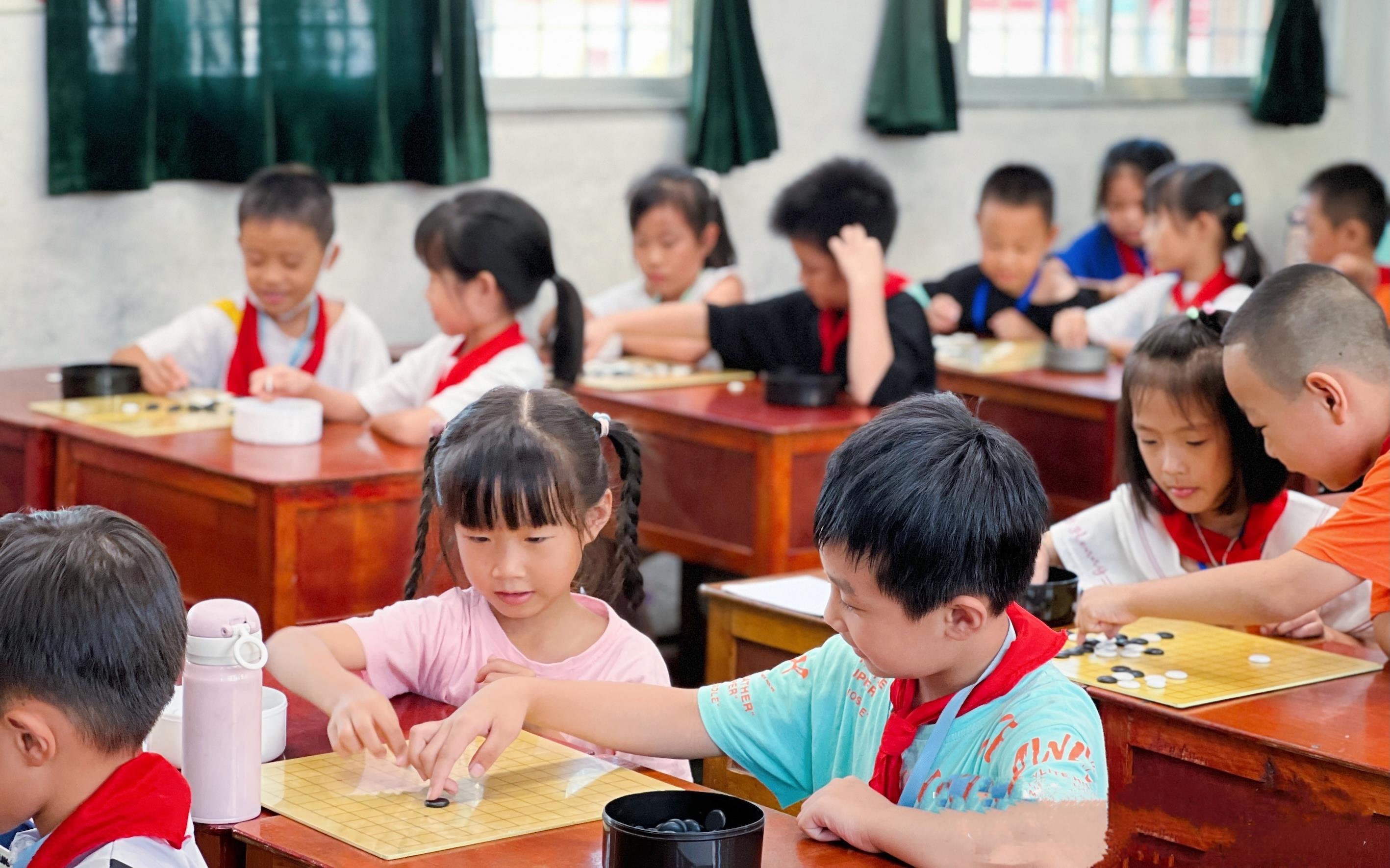 学生在广东潮州校园参加围棋普及活动。潮州市围棋协会供图