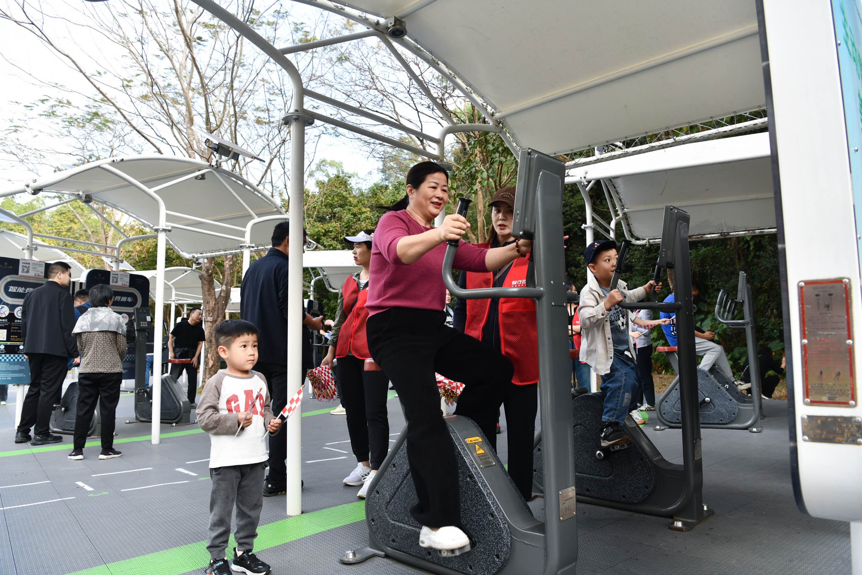2024年1月20日,市民在深圳莲花山公园西区室外智能健身房参加竞赛活动。新华社记者 梁旭 摄