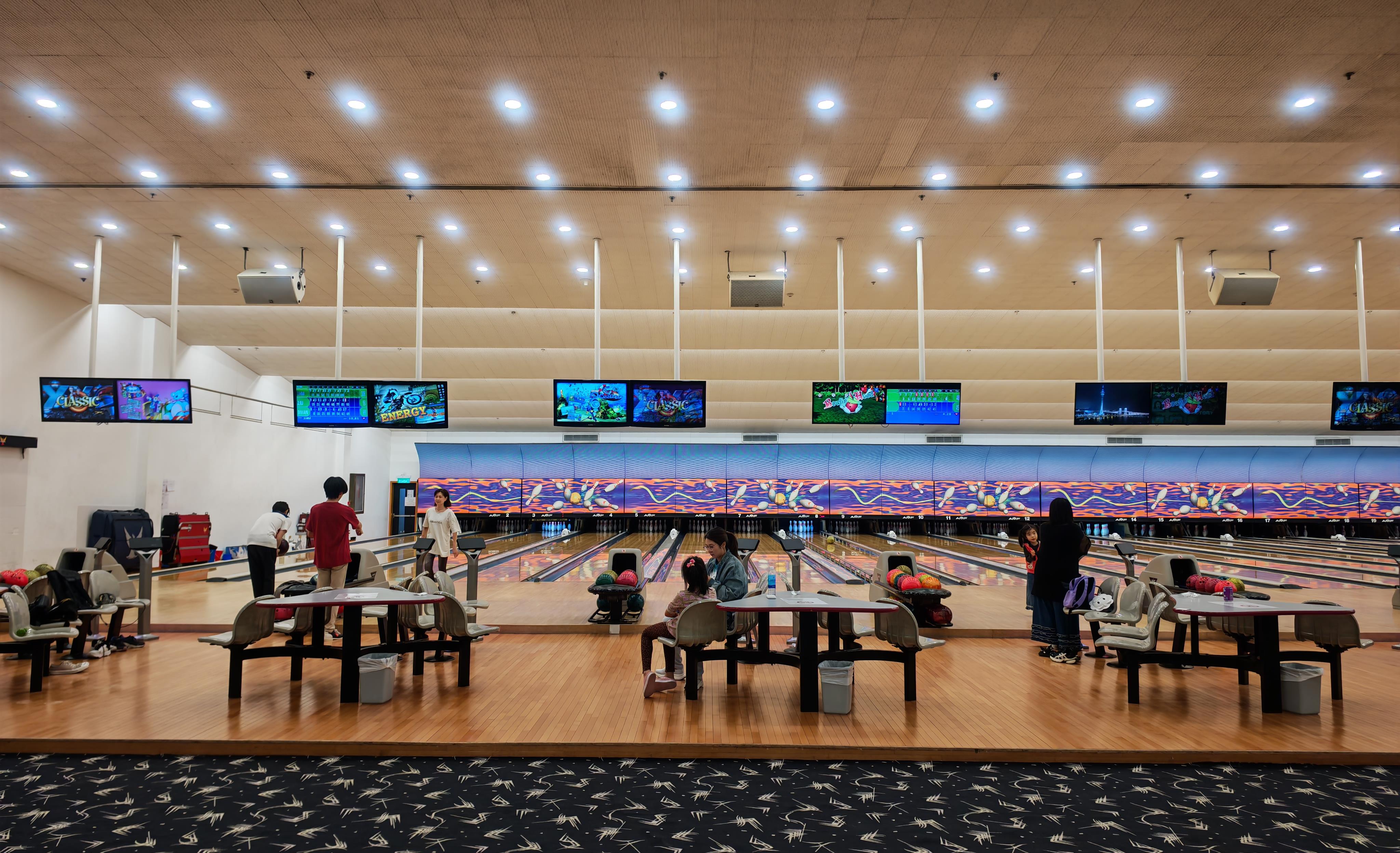 20205年11月15日,市民在澳门东亚运动会体育馆中打保龄球。新华社记者 孙凡越 摄